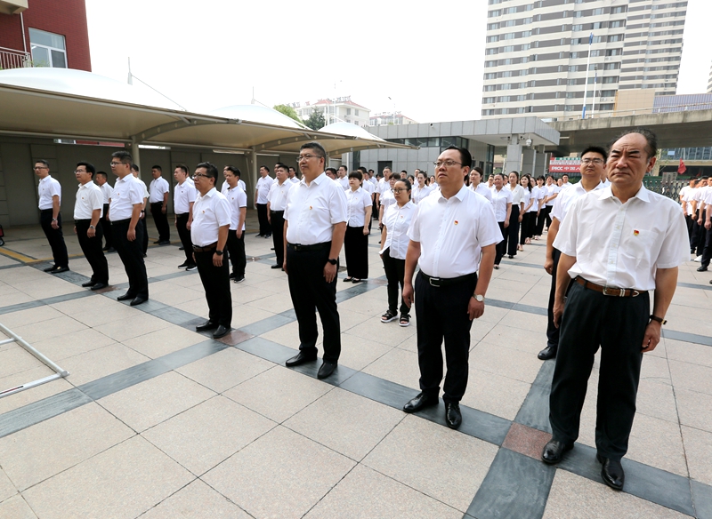 6月30日上午,集团全体干部职工统一列队参加升国旗仪式;全体党员在集团书记、董事长方玉新的带领下共同重温入党誓词,共唱红色歌曲《没有共产党就没有新中国》《歌唱祖国》;同时,方玉新同志以《点亮红色灯塔 引领国企远航》为题为全员讲授了党史学习教育专题党课;市委党校教务处颜志强主任作了《救国兴国富国强国——中国共产党百年奋斗史》专题讲座。随后,集团领导一行前往党员“双报到”“共驻共建”社区走访慰问了“光荣在党50年”老党员。7月1日,集团全体干部职工集中收听收看中国共产党成立100周年庆祝大会实况,共同观看了红色主旋律教育影片《1921》。